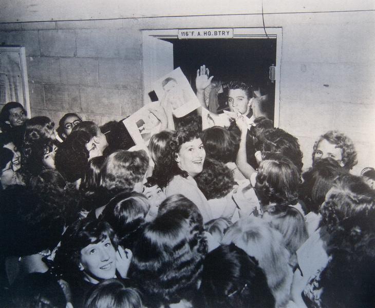 Elvis Presley in 1960, being mobbed by autograph-hunting US servicemen's daughters in Bad Nauheim, West Germany.