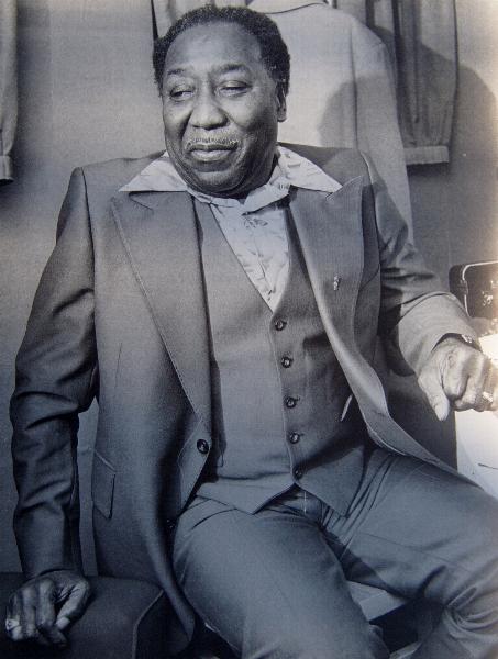One of the greatest post-war blues singers, Muddy Waters, backstage at the Hammersmith Odeon in November 1976.