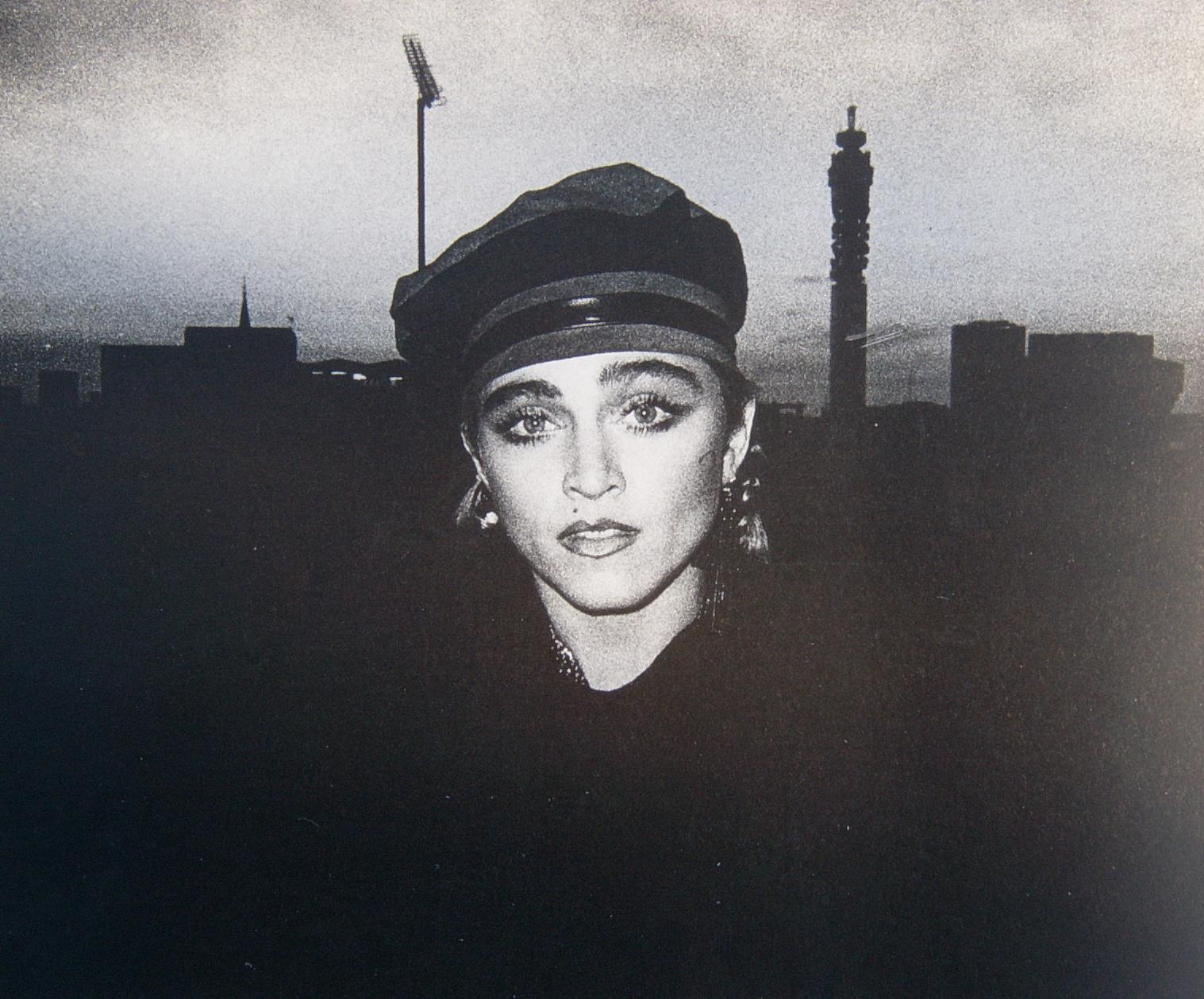 Madonna, on the roof of her record company's offices, visiting London for her first UK dates, October 14, 1983.