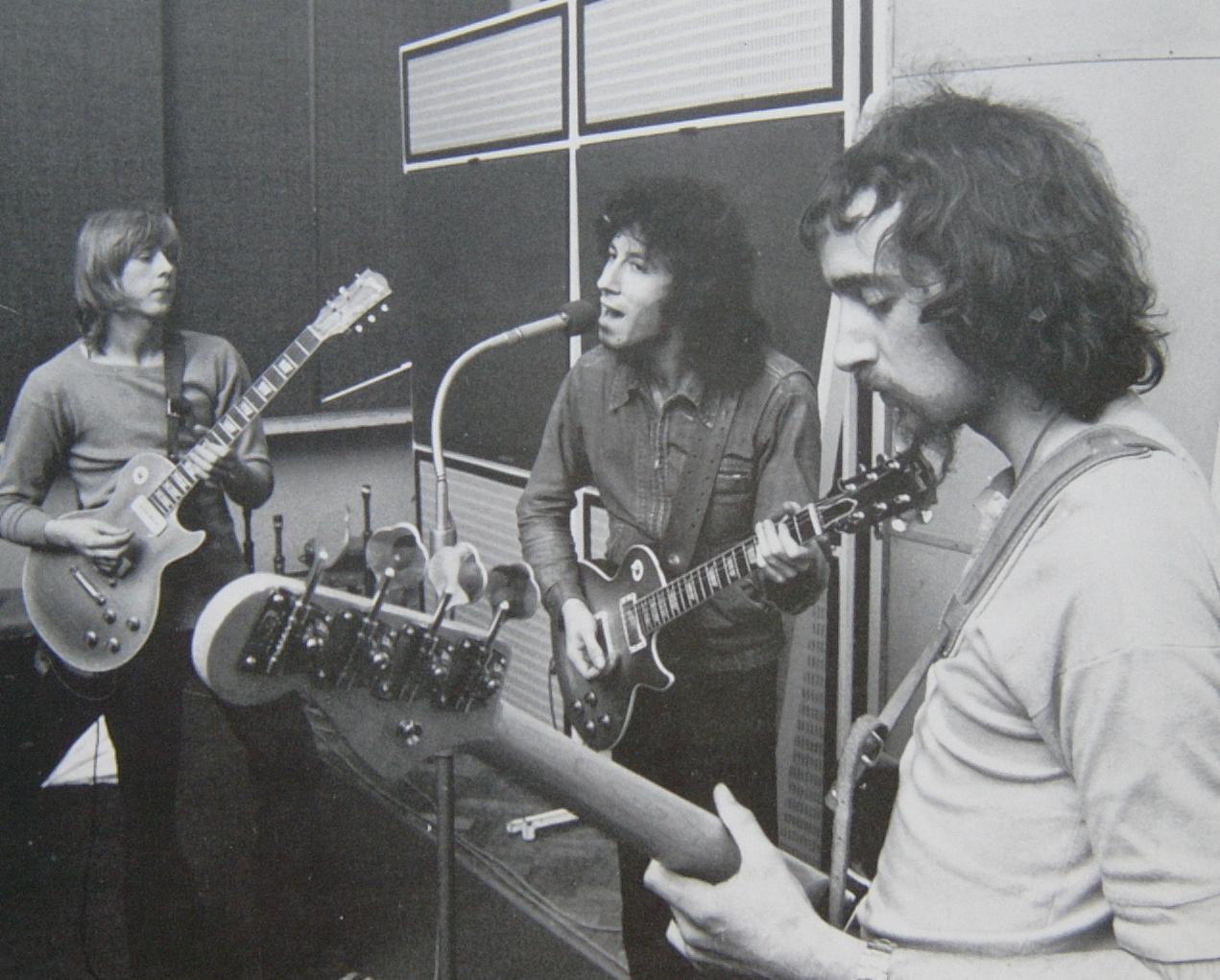 Peter Green (centre) in the studio with Fleetwood Mac in the late '60s. Also pictured are Danny Kirwan (left) and John McVie.