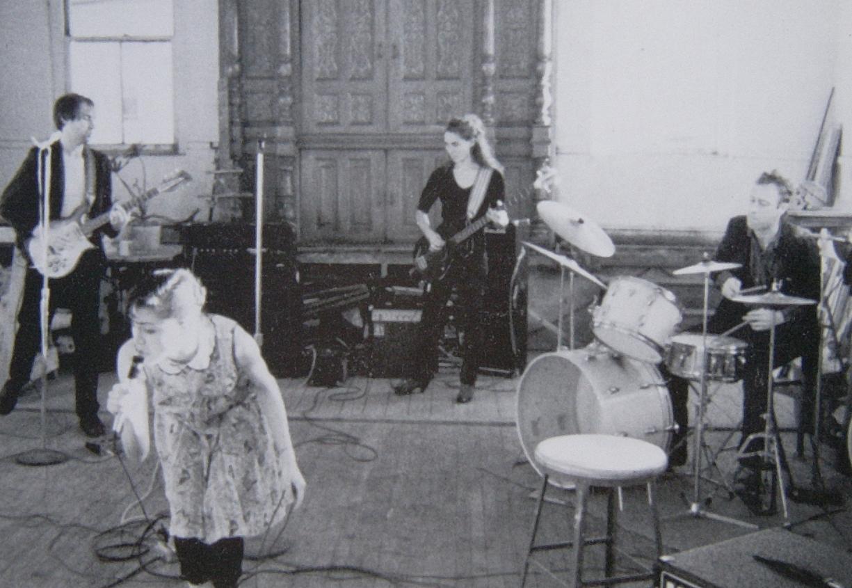 Madonna rehearses in a converted synagogue in New York, 1979, with her first band The Breakfast Club, which she formed with boyfriend Dan Gilroy. (From left) Dan's brother Ed Gilroy (rhythm guitarist), Madonna, Angie Smit (on bass) and Dan Gilroy. |