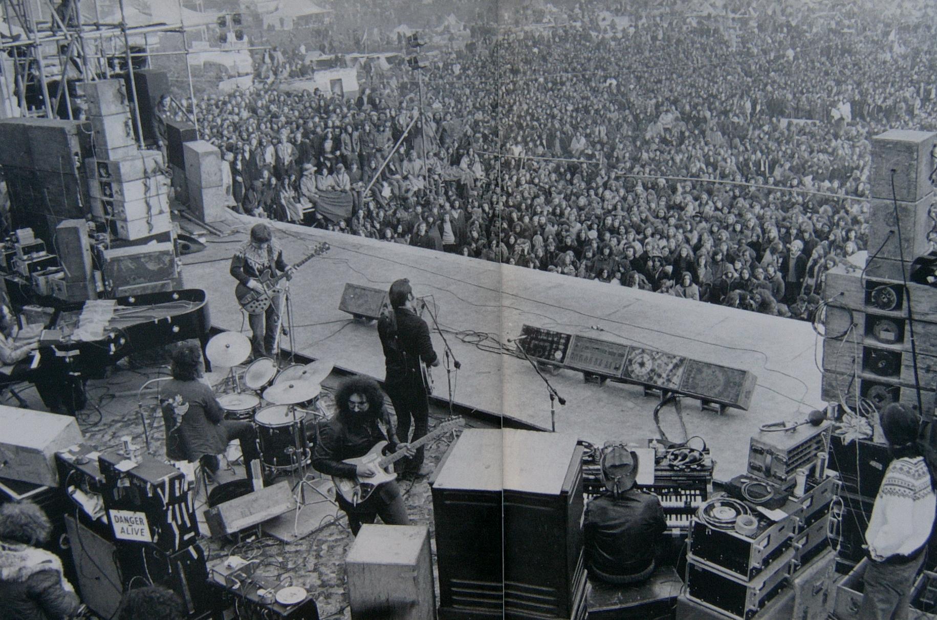 The Grateful Dead appear at one of Britain's less celebrated outdoor events, the festival at Bickershaw, near Wigan, in 1972.