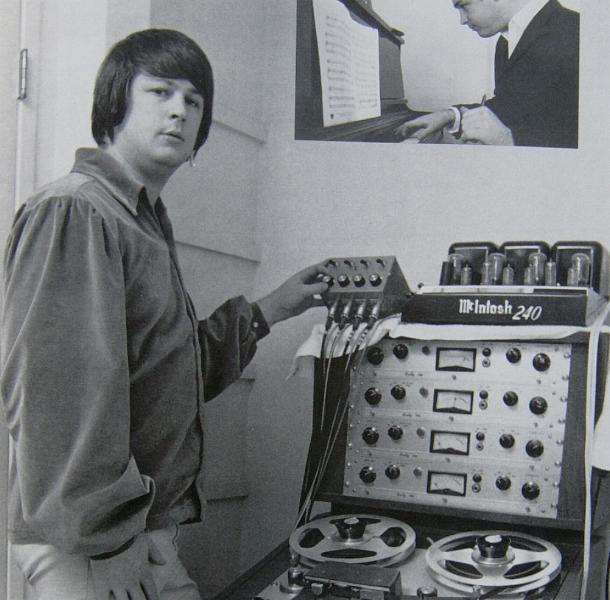 Brian Wilson, the vastly gifted author of all the Beach Boys' classic hits, ingeniously testing the capabilities of the state-of-the-art recording equipment for the complex vocal symphonies on Pet Sounds. |