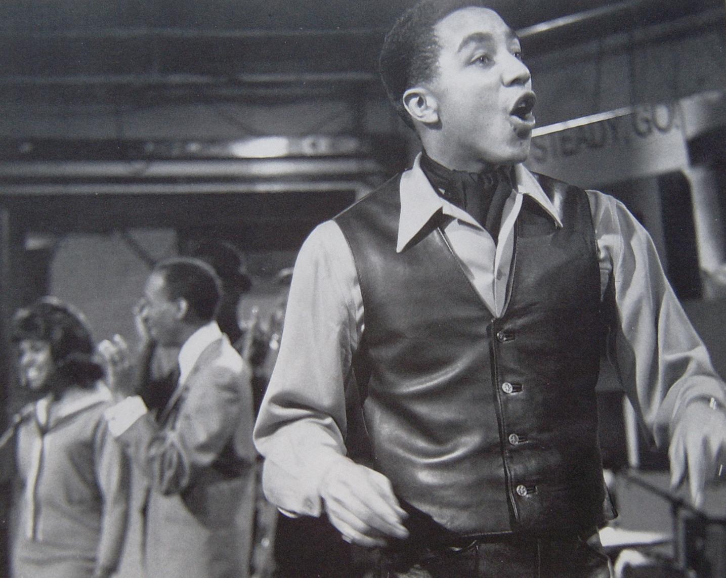 A leather-clad Smokey Robinson (and his Miracles) enthusiastically inspects the Ready Steady Go! studios prior to a mid-'60s British television appearance. Already established at home with hits for Motown colleagues The Temptations (The Way You Do Things) and Mary Wells (My Guy), he's soon to be immortalised in the UK with a string of hits including Tears Of A Clown, I Second That Emotion and Tracks Of My Tears. |