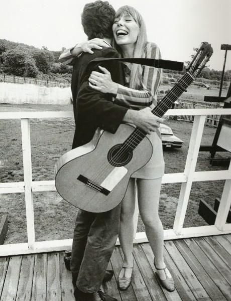 Joni Mitchell welcomes fellow acoustic troubadour Leonard Cohen to the Newport Folk Festival, '67.