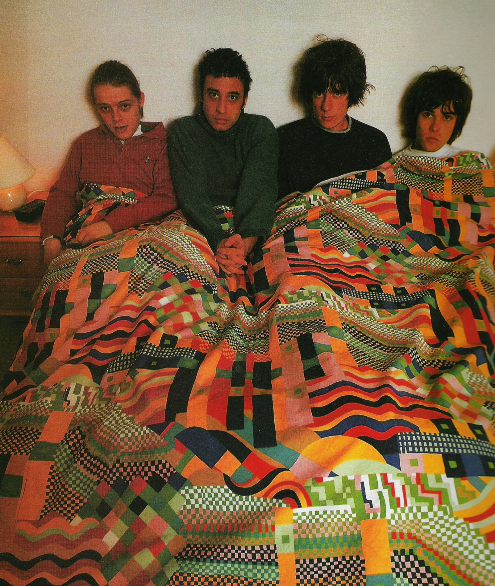 The Stone Roses retreat to their boudoir to escape the rigours of a recording session at Rockfield Studios, Wales, February 5, 1990.